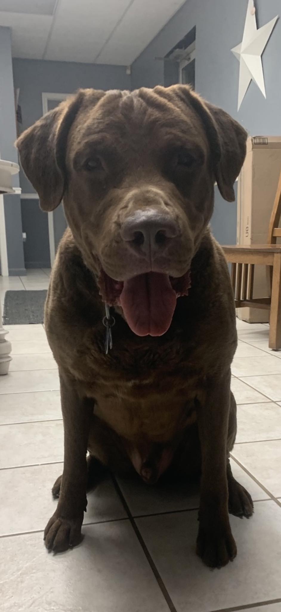 Cash is a male Chesapeake Bay Retriever.