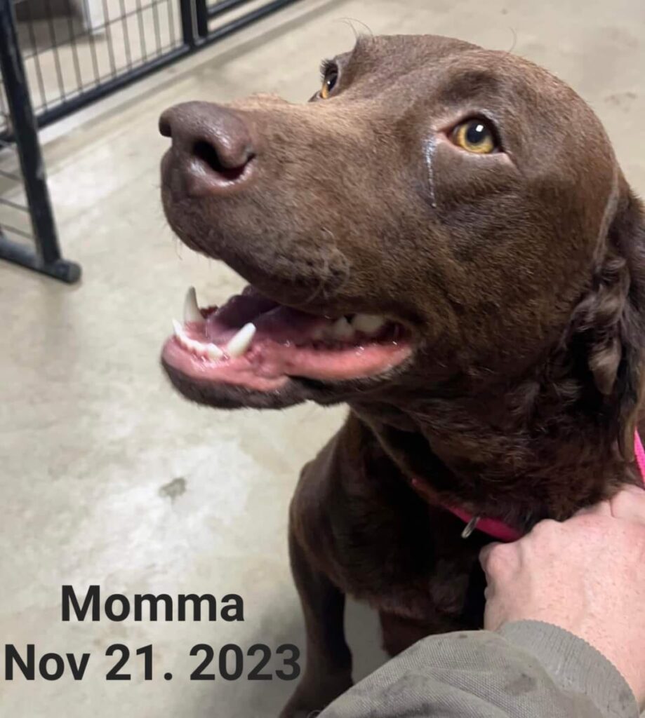 Shawney is a young Chesapeake Bay Retriever Shawney was found with two other companion dogs in northern Minnesota with a face full of quills. When Shawney was found, she was very pregnant. Five days after she was found, she delivered six (6) healthy puppies. Three males and three females. Shawney was a great momma until…