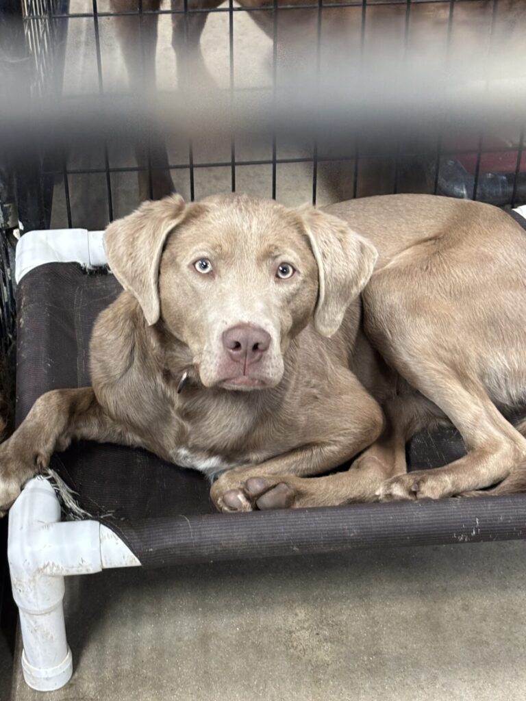 Blitz is a male Chesapeake Bay Retriever. Blitz was seen wandering in Minnesota for several weeks. He was too skittish to be caught by hand so he was trapped very quickly in a Missy Trap. He was not claimed so he made his way to us. He is a shy guy that is learning how…